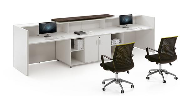 白色時尚簡約雙人前臺辦公桌椅